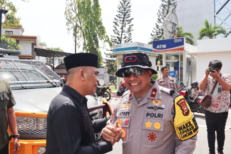 Ketua DPRD Riau, Kaderismanto bersalaman dengan Wakapolda Riau Brigjen Andrianto Jossy Kusumo