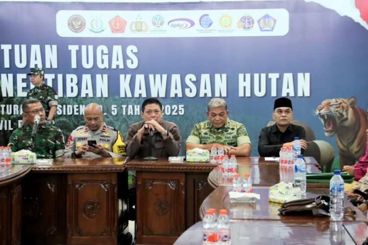 Turut hadir juga Komandan Satuan Tugas Penertiban Kawasan Hutan (Satgas PKH) Taman Nasional Tesso Nilo (TNTN), Mayjen TNI Dody Triwinarto, Wakapolda Riau Brigjen Andrianto Jossy Kusumo, Danrem 031/Wira Bima Kolonel Inf Jarot Suprihanto.