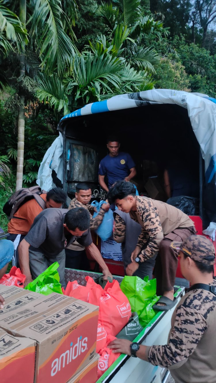 foto: Bantuan kemanusiaan dilansir ke lokasi Nagari Sungai Batang karena akses ke lokasi tidak bisa ditempuh oleh truk yang ada muatan