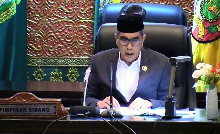 WARTASULUH.COM, PEKANBARU - Wakil Ketua DPRD Provinsi Riau Parisman Ihwan pimpin Rapat Paripurna dengan agenda Penyampaian Laporan Keterangan Pertanggungjawaban (LKPJ) Kepala Daerah Tahun 2025, Senin (9/3/2026) di Ruang Rapat Paripurna DPRD Provinsi Riau. LKPJ itu disampaikan Gubernur Riau yang diwakili Sekretaris Daerah Provinsi (Sekdaprov) Riau Syahrial Abdi.