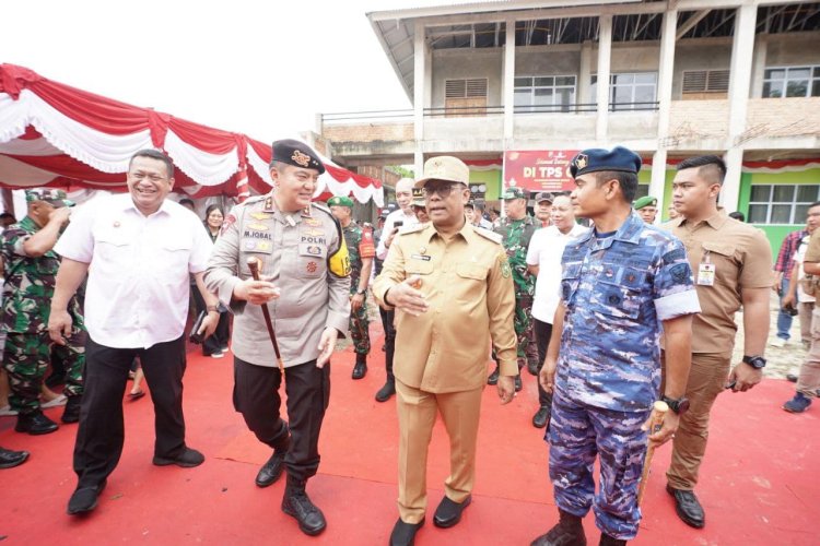 "Pagi hari ini, Forkopimda dikomandani Pak Kapolda, kita bersama melihat TPS dalam rangka pemungutan suara. Kita lihat kecukupan suaranya kemudian kelengkapan lainnya," ujar Pj Gubri.