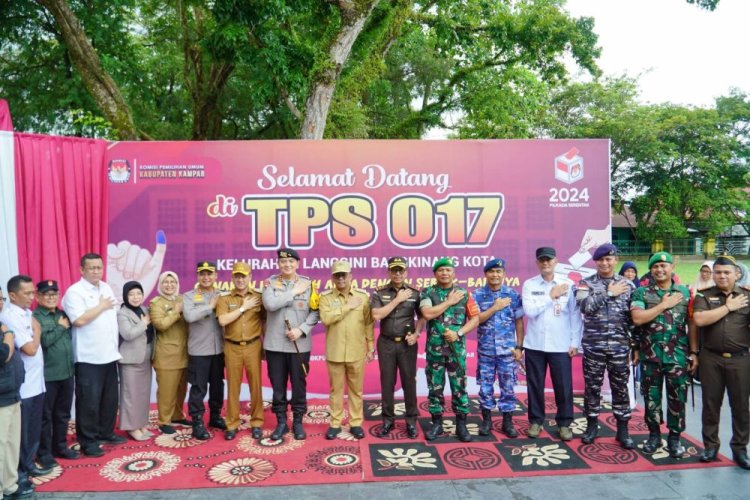 Perjalnan berikutnya Pj Gubernur Riau beserta Forkopimda meninjau Tempat Pemungutan Suara (TPS) diantaranya TPS 017, Lapangan Pelajar, Kelurahan Langgini , Bangkinang Kota untuk memastikan proses pemungutan suara berjalan dengan aman, tertib, dan sesuai protokol yang telah ditetapkan.